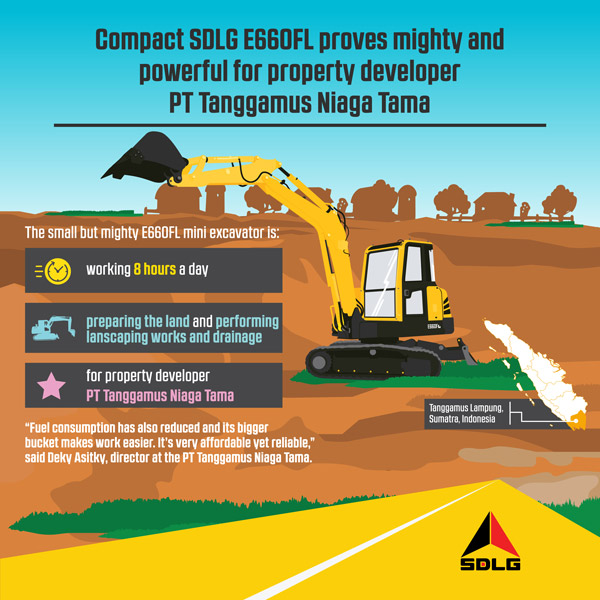 “Indonesia’s urbanization is growing rapidly, and companies need versatile machines that can work within tight space constraints,” said Deky Asitky, director of PT Tanggamus Niaga Tama. “The SDLG E660FL mini excavator may be small but it has proven its mightiness on site, and it is perfect for our work.”