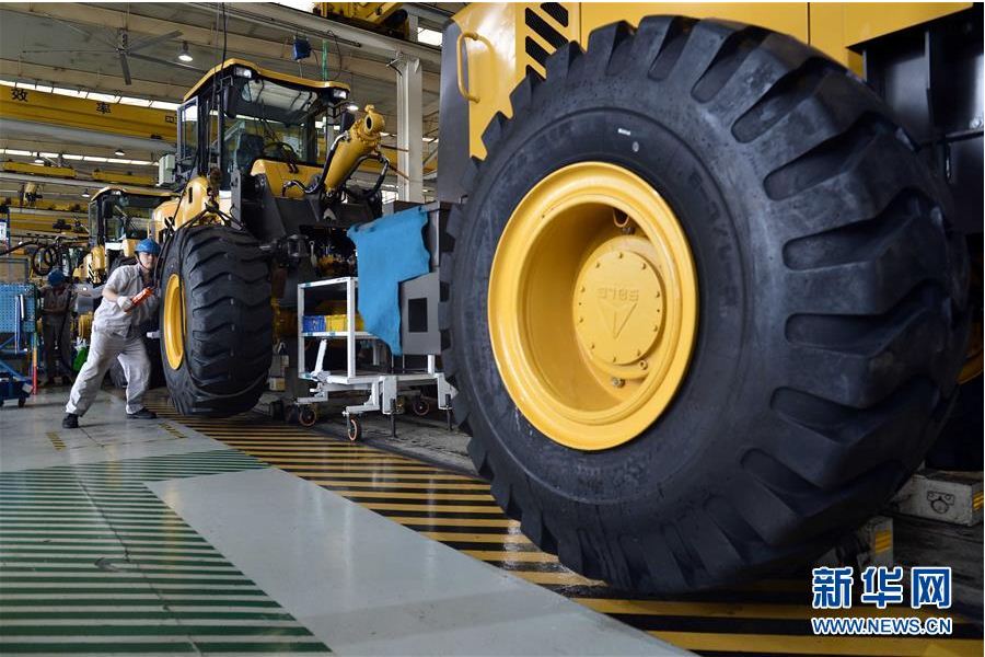 在山东中国·5001拉斯维加斯(股份)有限公司工程机械有限公司,工人在装载机生产线作业